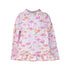 UPF 50+ Ruffle Rash Guard (Recycled): Your little one will be the best dressed on the beach in this Original Flap Happy Rash Guard with ruffles. This UPF 50+ fabric is not only stylish, but will also keep your little one protected from the harsh rays of the sun! Don't forget to get a Flap Happy hat and swimsuit to match your rash guard.