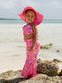 Our Mermaid Tail 3 Piece Mermaid Swim Set is a splash-tastic choice for your little mermaid-in-training! Made from sustainable fabric created from recycled plastic bottles, this set isn’t just eco-friendly; it shimmers like a magical mermaid glow that will make your baby or toddler shine like the ocean's treasures. Plus, it's UPF 50+ rated, ensuring that your little one is sun-safe while making waves. This fin-tastic set includes a two-piece swimsuit with adjustable straps for a perfect fit, plus a playful swim tail. The tail is designed for water fun but also keeps practicality in mind that it’s not sewn shut, allowing your little one to walk around with ease when it's time to explore the shore. The elastic waistband ensures a comfortable and secure fit, so your mermaid can flip, splash, and play all day. With this mermazing three-piece set, your child will be ready to make waves both in and out of the water—protected from the sun and looking fin-credible!